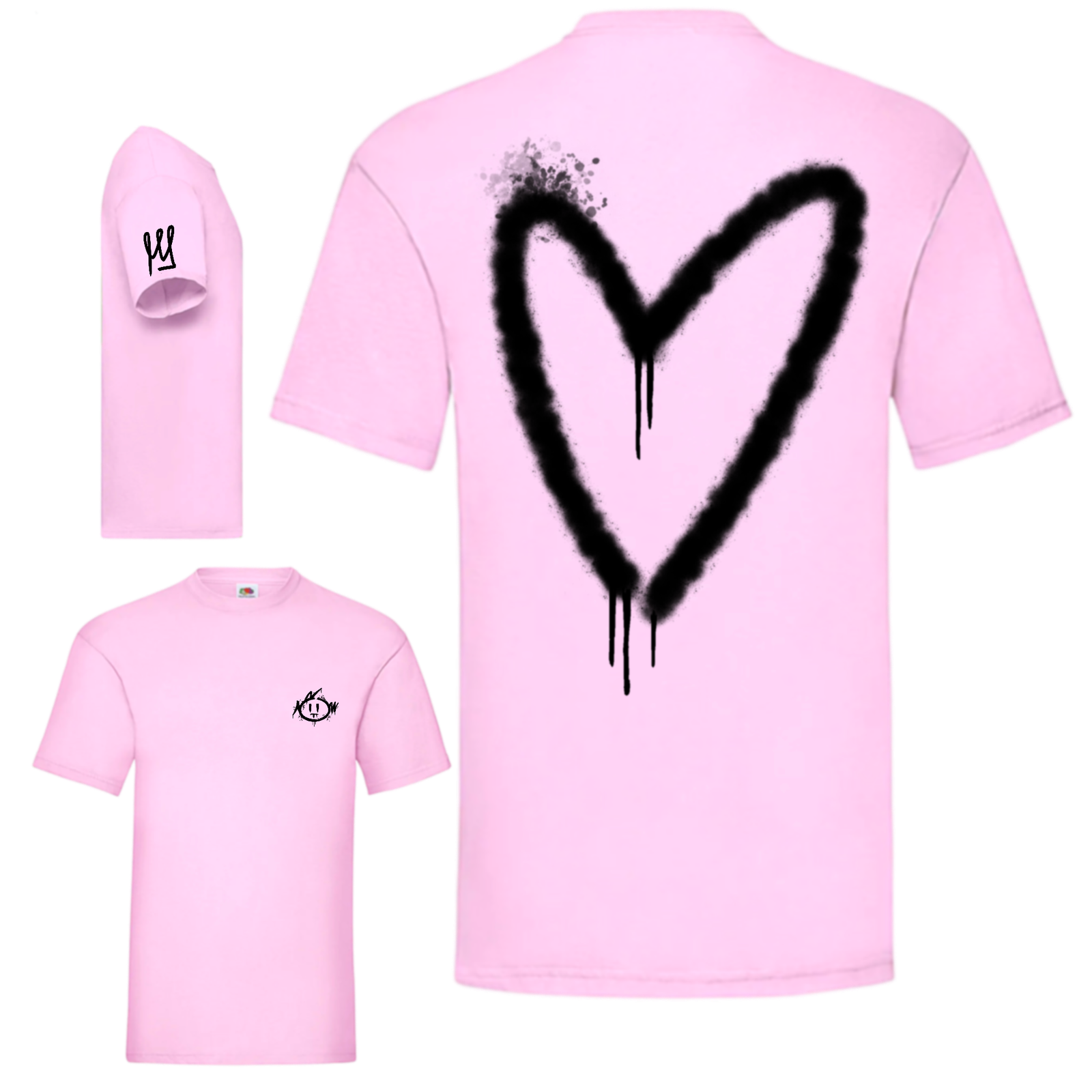 Le visuel, à la fois minimal et puissant, joue sur le contraste : un grand cœur noir en spray, imparfait, presque sauvage, qui s’étale dans une coulure libre.