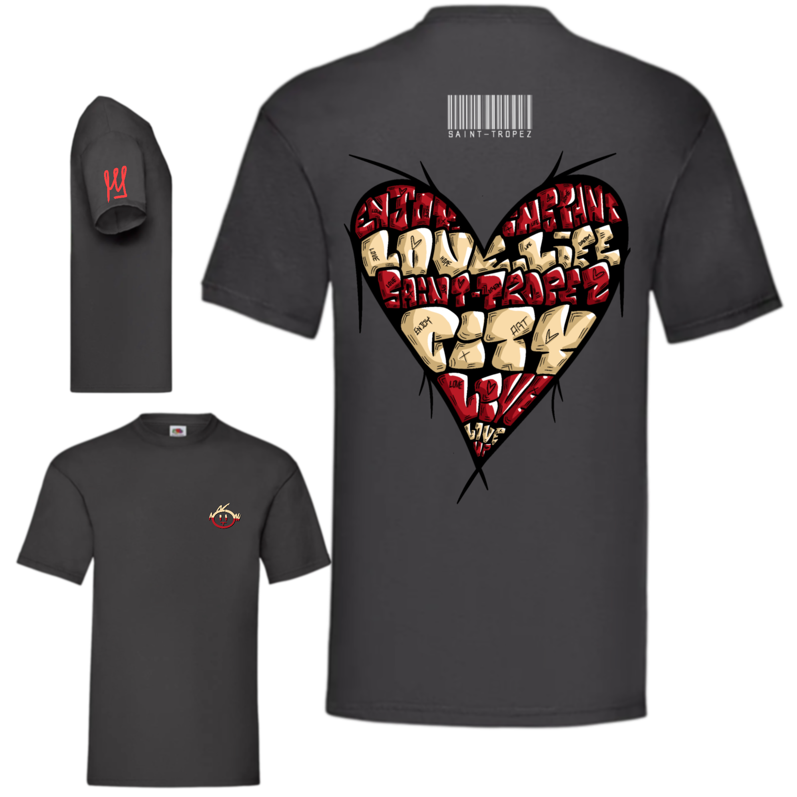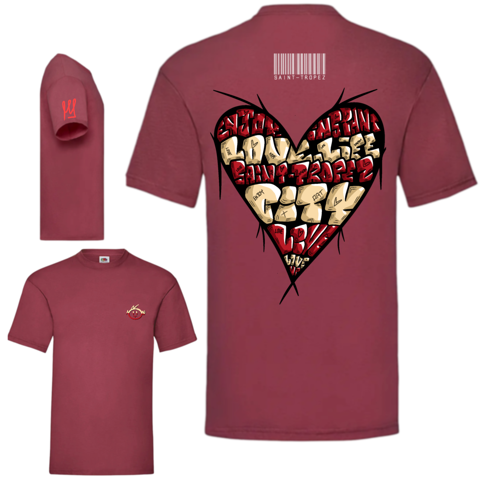 Le t-shirt “Cœur Red” fait battre le cœur de la collection Saint-Tropez au rythme d’un street art assumé et d’une bonne dose d’ironie romantique.